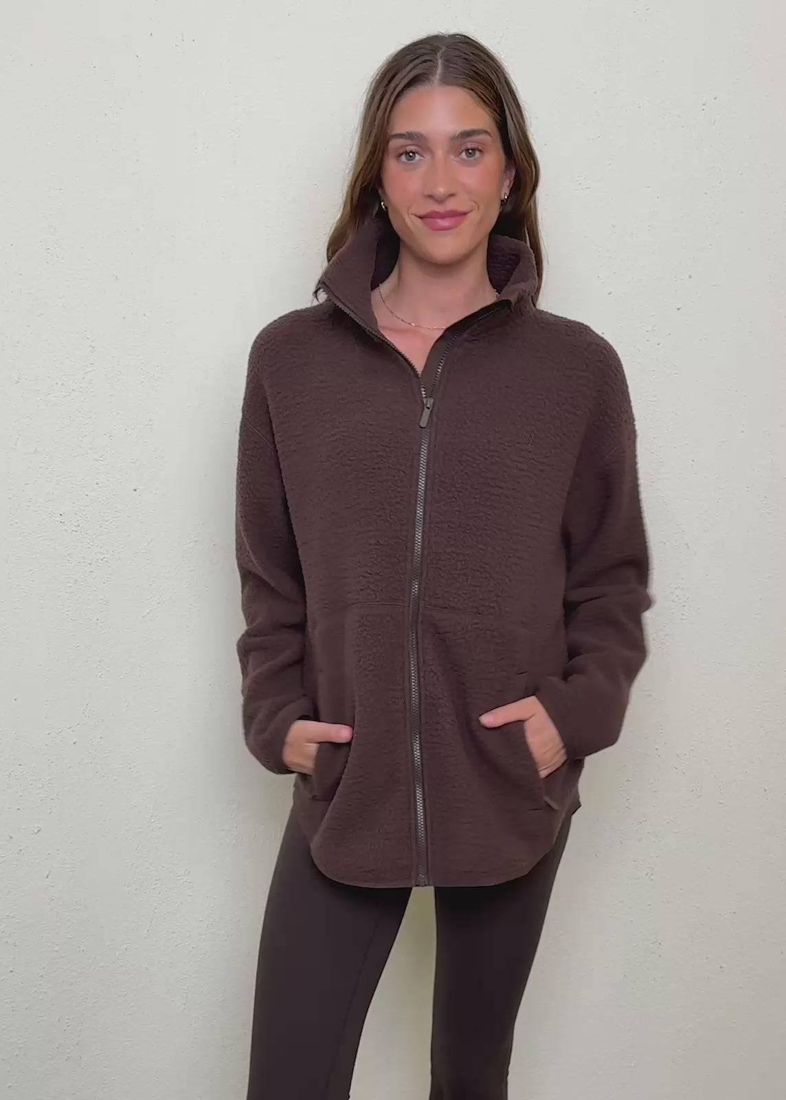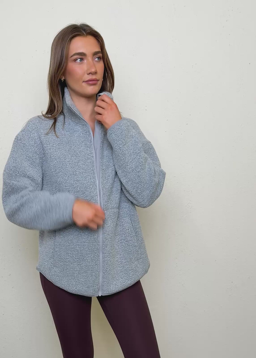 Rain or Shine sherpa jackets — water-repellent, cozy outerwear for any weather. Perfect for layering over leggings or activewear on the go